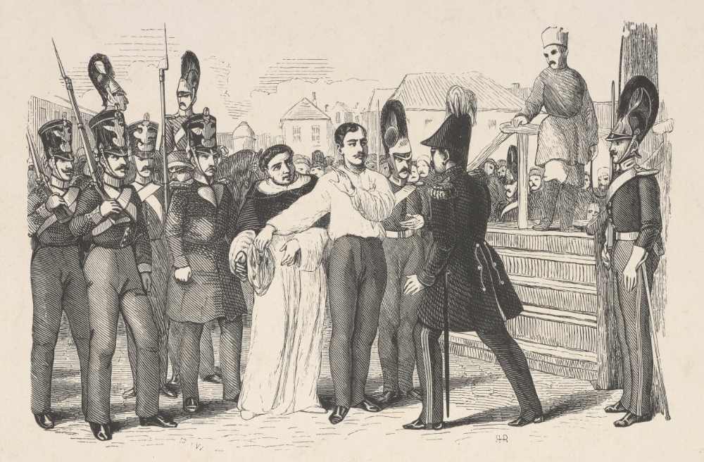 L'exécution d'Artur Zawisza à Vilnius. Illustration française des années 1830/40.