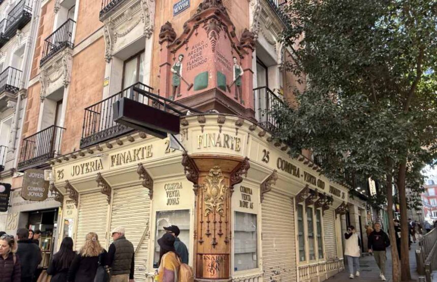 Mais revenons à la numismatique et aux attraits pour les collectionneurs de pièces. Ceux-ci peuvent s’attendre à trouver, aux alentours de la Plaza Mayor, de nombreux témoignages du grand intérêt que portent les Espagnols à leurs pièces et à leurs timbres. De nombreux numismates se sont installés ici et exposent leurs articles dans de grandes vitrines depuis plusieurs décennies. En témoigne une décoration de façade remarquable datant du début du XXe siècle, située à l’une des entrées de la Plaza Mayor : on y voit en effet figurer en bonne place le nom latin du triumvirat chargé de la production monétaire sous la République : AURO ARGENTO AERE FLANDO FERIUNDO TRIUMVIRIS MONETALIS — le triumvirat chargé de la fonte et de la frappe de l’or, de l’argent et du bronze.