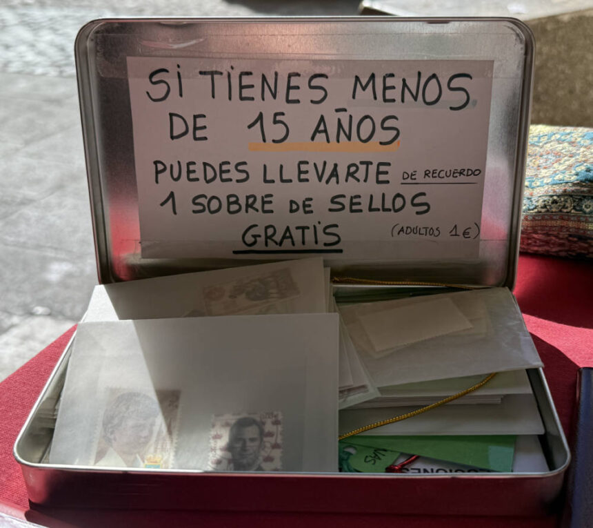 Ce que je trouve encore plus important, c’est la facilité d’accès au commerce des pièces de monnaie dont bénéficient les visiteurs ici, au Mercado de Monedas y Sellos. Après tout, quel profane connaît la fascination de la numismatique s’il n’y est pas tombé par hasard ? Ici, de nombreux marchands sont ravis de voir des pères venir avec leurs enfants — et sur pas mal de stands, il y a un petit cadeau pour les enfants. Le fait que les nombreux touristes qui flânent sur la Plaza Mayor le dimanche se rendent également compte qu’on peut collectionner des pièces est un effet secondaire positif.