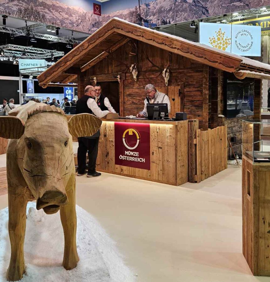 Le stand de la Monnaie autrichienne attire toujours tous les regards avec sa cabane alpine et sa vache emblématique, cette fois recouverte de neige. Il a été le point culminant absolu pour d’innombrables enfants de tous âges, qui ont marché avec enthousiasme dans la neige artificielle. Certains l’ont fait avec un tel enthousiasme que leurs mères n’ont pu les en éloigner qu’avec une douce fermeté, tandis que d’autres (les enfants plus âgés) l’ont fait plus discrètement, mais avec un plaisir sincère.